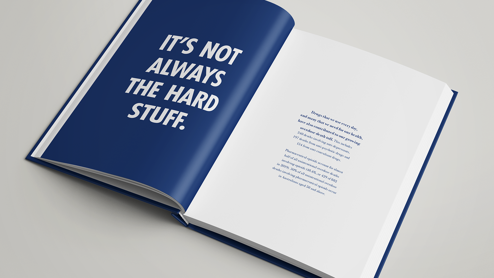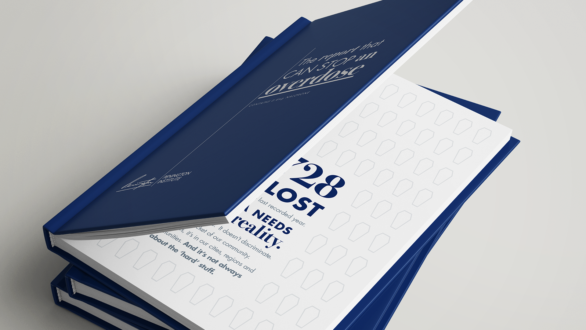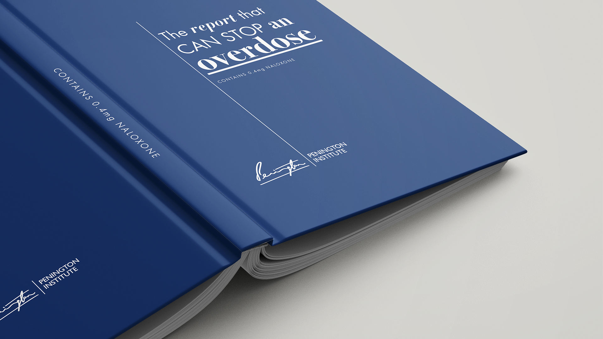 Each copy of The Report That Can Stop An Overdose, has been printed with ink containing 0.4mg of Naloxone, the dosage needed to instantly reverse the effects of an overdose, but sadly isn’t readily available to those at risk.
